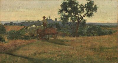BOVI AL CARRO SULLO SFONDO DI SAN GIMIGNANO
