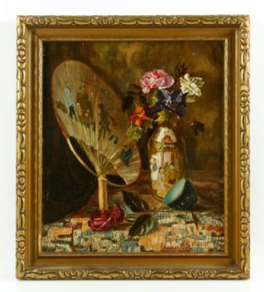 | Still life with flowers in a Japanese vase, a fan, and a cup | |