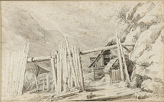 | A Wooded Alpine Landscape with Settler's Hut | |