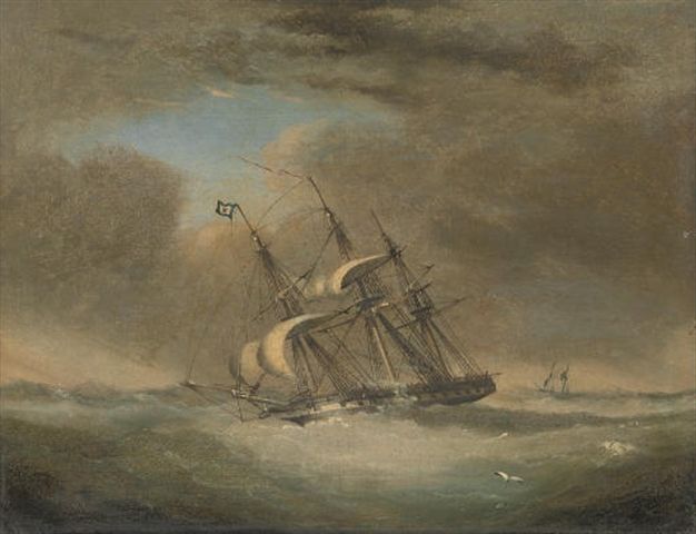| H.M.S. Warspite, as a frigate, running before the wind under reduced sail | |
