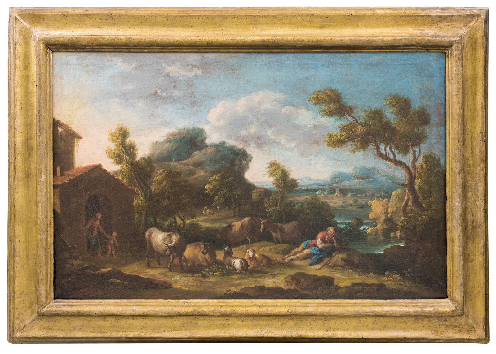 Paesaggio fluviale con pastori e armenti