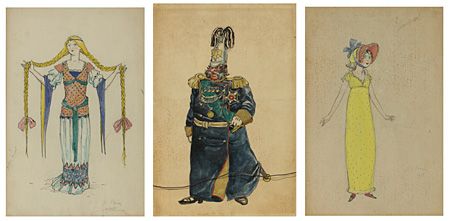 | Three Costume Designs for Nikita Balieff`s production of "Amour et Hierarchie" (Love and Hierarchy) | |