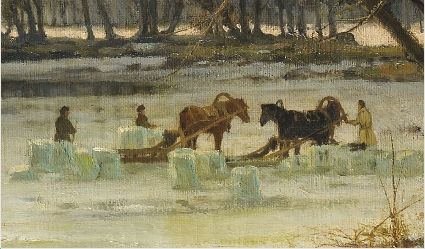 | La découpe des blocs de glace sur le lac gelé | |