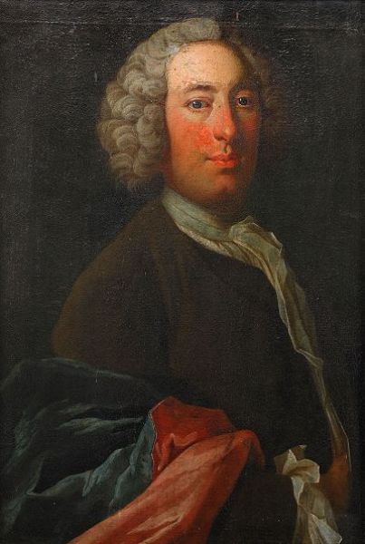 | Porträtt ämbetsman iklädd brun rock och blå mantel, möjligen föreställande hovintendenten Carl Hårleman | |