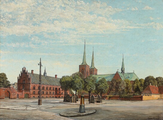 | View from the square in Roskilde with the old city hall and the cathedral | |