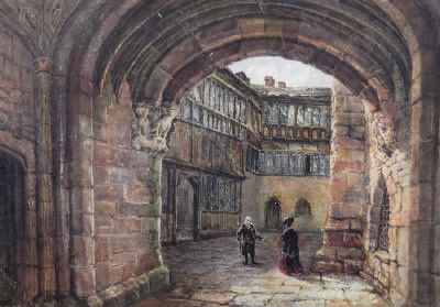 Figures in an Elizabethan courtyard