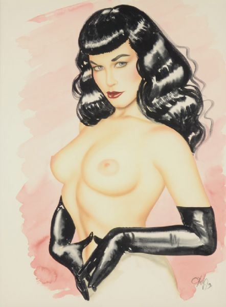 | Bettie Page, a topless portrait with Bettie wearing black gloves | |