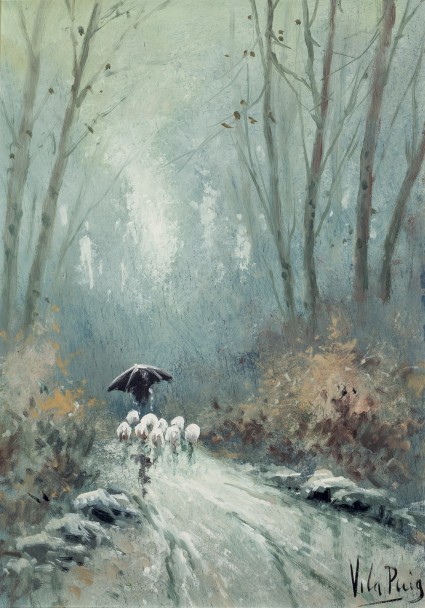 Conduciendo el rebaño bajo la lluvia