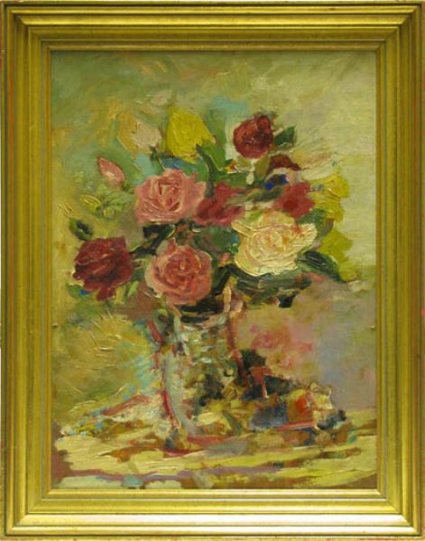 Rosenstrauß in changierender Vase. Impressionistische Bildauffassung mit Spachteltechnik