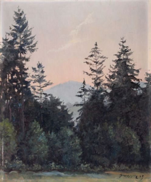 Abenddämmerung im Wald / Stilleben mit Feldblumen.