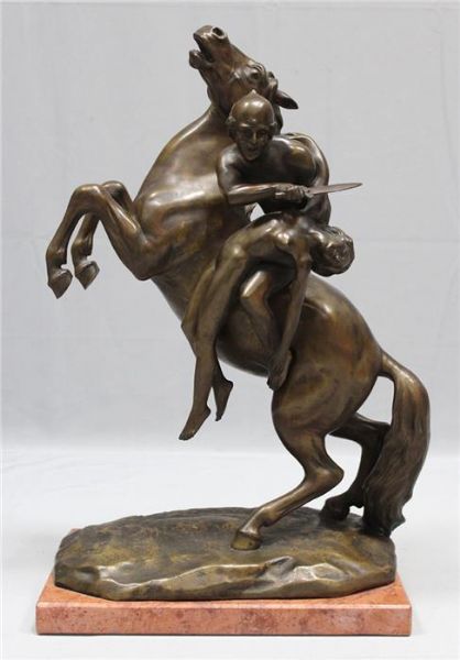 | Große Figurengruppe: Männerakt zu Pferd mit Mädchenakt, wohl "Raub der Sabinerinnen" | |