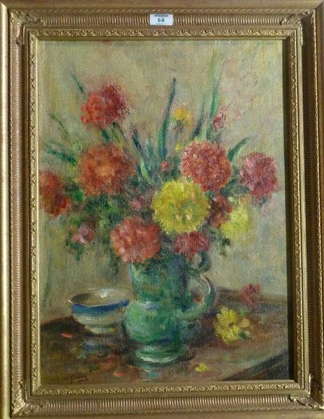 Still Life of Flowers in a Green Jug