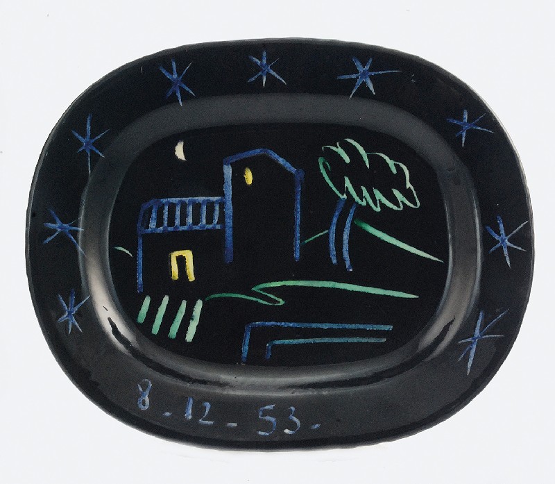 Półmisek z pejzażem i datą: 8.12.53 na kołnierzu
