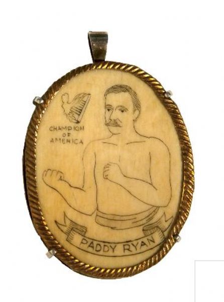 WORLD'S HEAVYWEIGHT CHAMPION (1880-1882) SCRIMSHAWED OVAL BONE PENDANT
