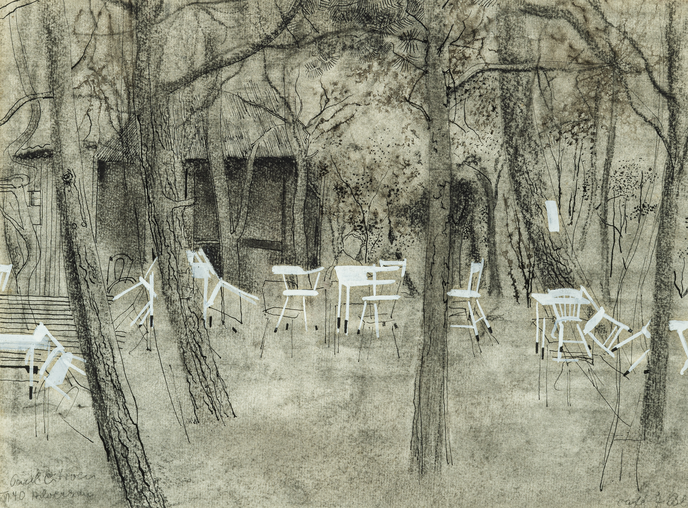 Café 't Bluk (1940) Signed, dated VIII.40 and annotated Hilversum lower left Titled lower right Ink, gouache and charcoal on paper, 35.2 x 25.6 cm Provenance: Private collection, the Netherlands * Please note: condition reports and | |