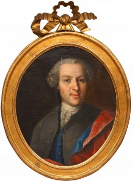 Porträtt - midjebild av man med cape. A tergo signerad P. Dahlman