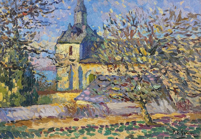 JARDIN PRINTANIER DEVANT UNE EGLISE DE CAMPAGNE