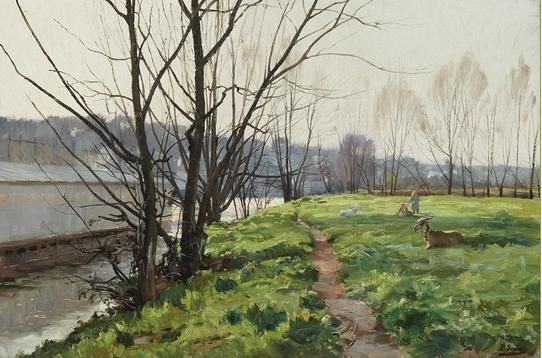 Children with Goats Along a Canal