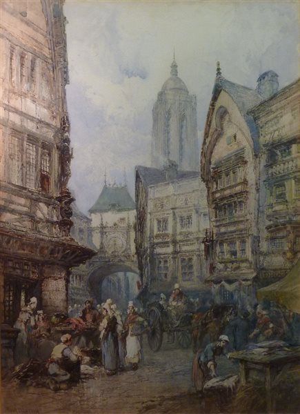 Rouen Market Place with the Clock Tower in the distance