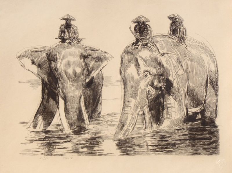 | «Eléphants et leur cornacs» dite aussi «Eléphants au bain dans la rivière des parfums, à Hué» | |