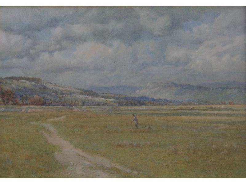 TENDING SHEEP ON A COUNTRY PATH; ACROSS THE MOSSES