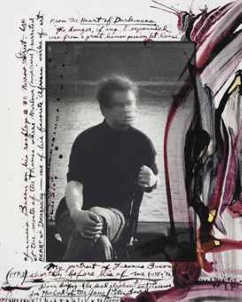 | Francis Bacon on his rooftop @ 80 Narrow Street, Lon., done during the dead elephant interviews for the End of the Game | |