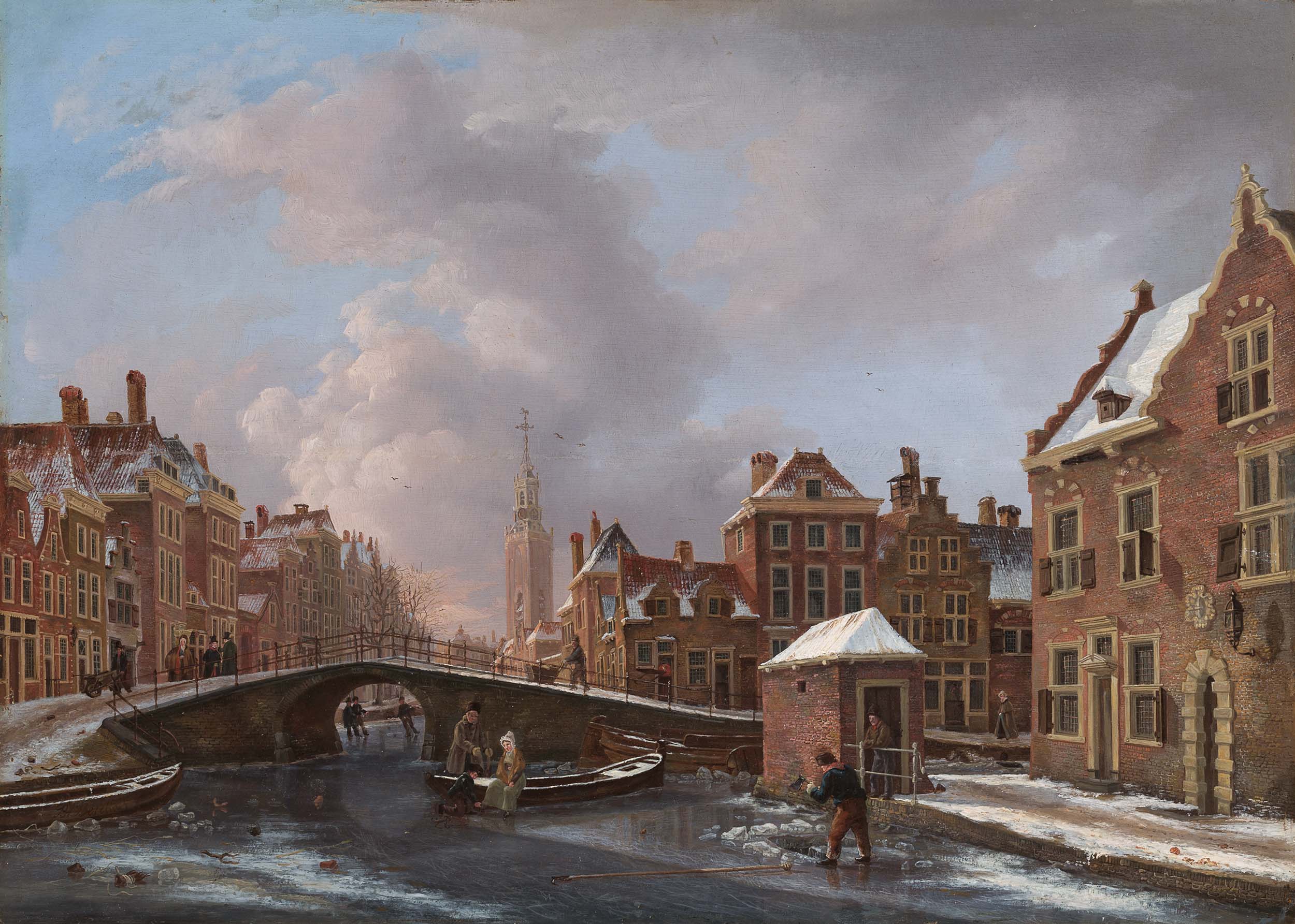 | Figures on a Frozen Canal, the St. Jacob's Church Beyond, The Hague | |