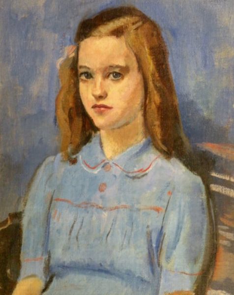 Portrait of a young girl wearing a blue dress
