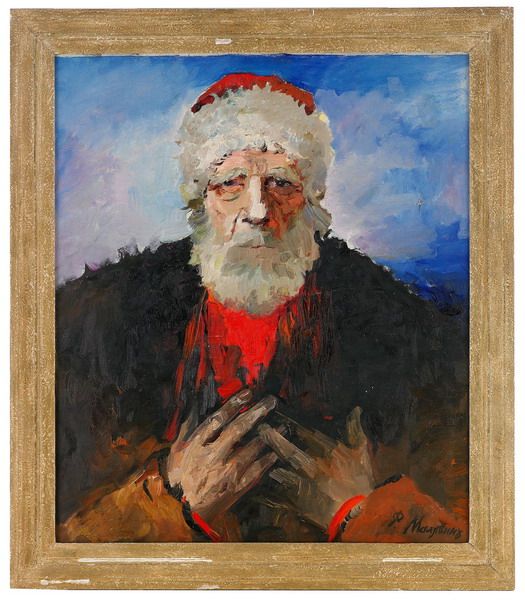 | Portrait of a white-bearded man in fur-trimmed cap | |