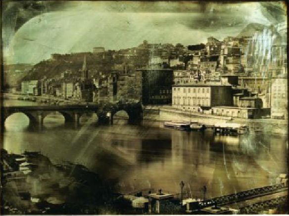 | Lyon, la Saône et le pont Tilsitt (actuellement Pont Bonaparte), vers 1850 | |