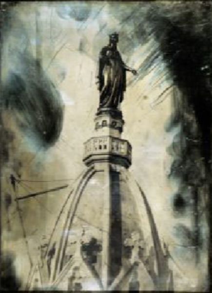 Lyon, pose de la statue de Notre-Dame de Fourvière, vers 1852