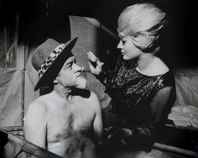 | Anita Ekberg with Bob Hope on the set of “Call Me Bwana” | |