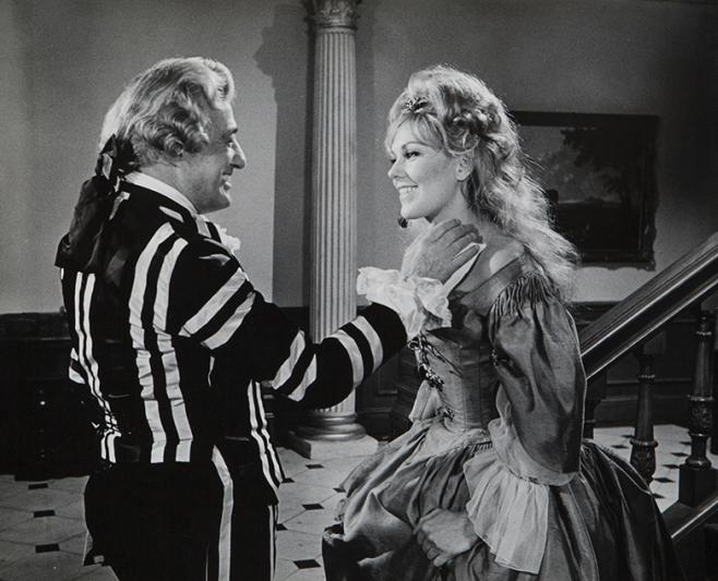 | Kim Novak and Vittorio De Sica on the set of “The Amorous Adventures of Moll Flanders” | |