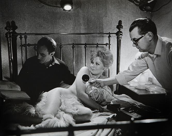 | Kim Novak with director Ken Hughes on the set of “Of Human Bondage” | |