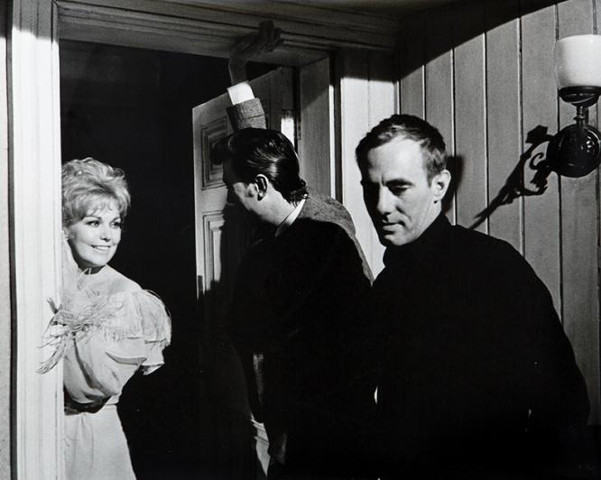 | Kim Novak with Laurence Harvey and Ken Hughes on the set of “Of Human Bondage” | |