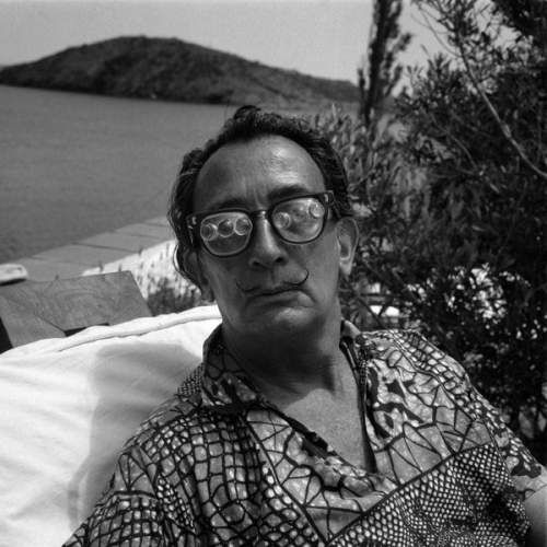 Dali et les lunettes loupes sur sa terrasse à Port Lligat, 1963.