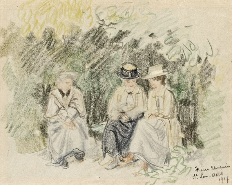 TROIS FEMMES ASSISES DANS UN JARDIN