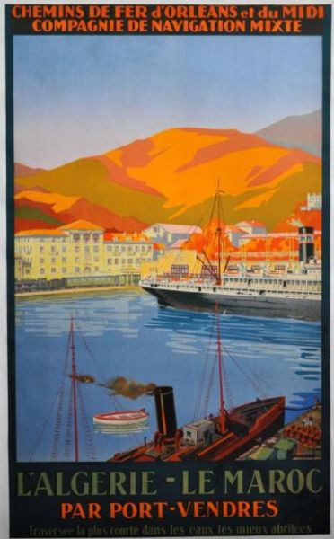 | Chemins de Fer d’Orléans et du Midi. Compagnie de Navigation Mixte. L’ALGÉRIE - LE MAROC PAR PORT-VENDRES. “Traversée la plus c | |