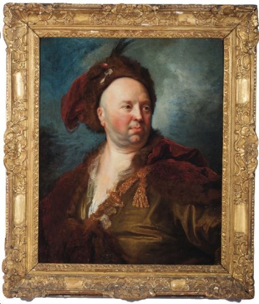 | PORTRAIT OF A GENTLEMAN IN GARNET COLORED ROBE AND FEATHERED CAP, THOUGHT TO BE CROZERT, A BANKER | |