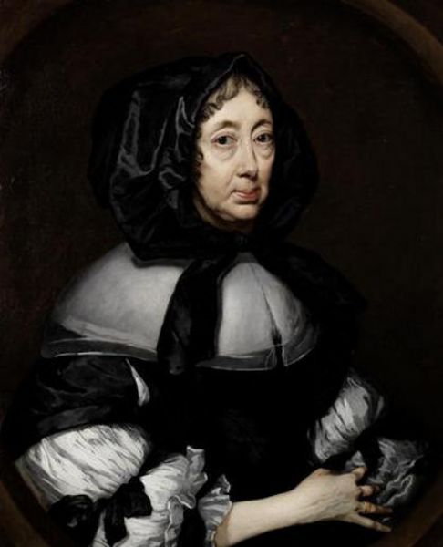 | Portrait of Catherine, Lady Hoby of Bisham Abbey, half-length, in a black and white dress and a black silk bonnet, within a pain | |