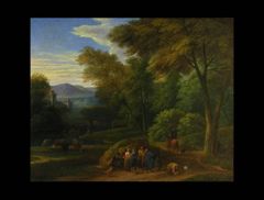 WALDLANDSCHAFT MIT GEWÄSSER UND FIGURENSTAFFAGE