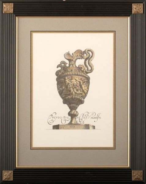 | Engraving hand-colored engravings of classically inspired Renaissance ewers, 2 items | |