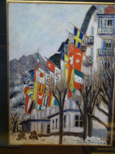 MAISONS AUX DRAPEAUX DANS UN PAYSAGE DE NEIGE