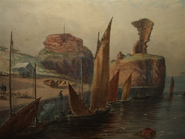 Dunbar Castle and Bass Rock with harbour in the foreground