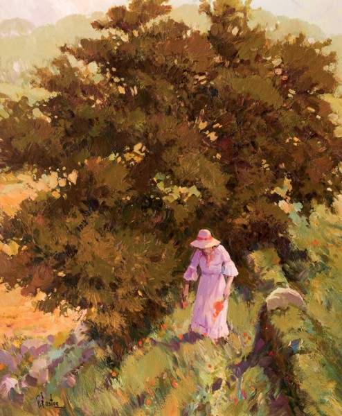 Dama recogiendo flores