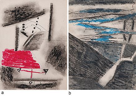 Pastel and ink on paper