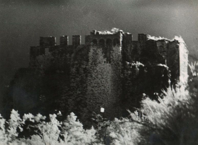 Coucher de soleil sur le château de Chalucet (infrarouge), Haute Vienne