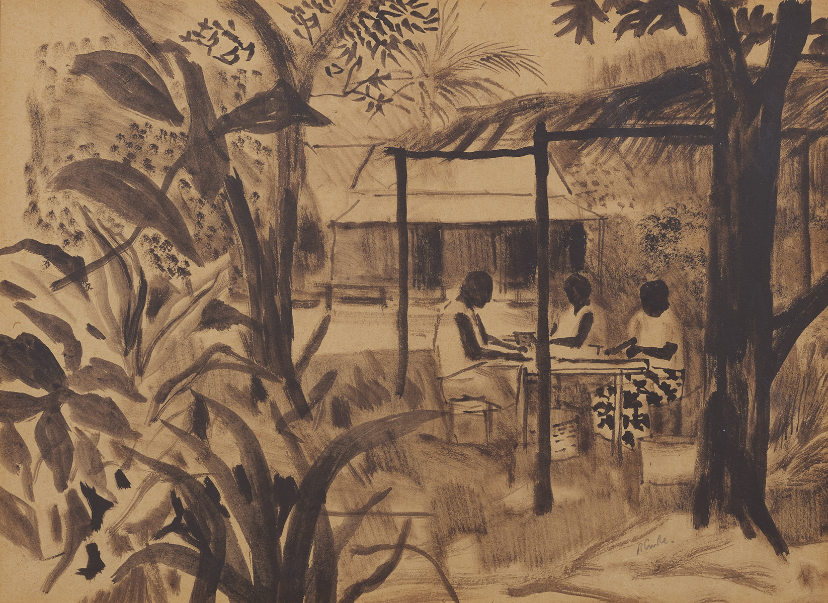 | Charcoal and wash on paper | |