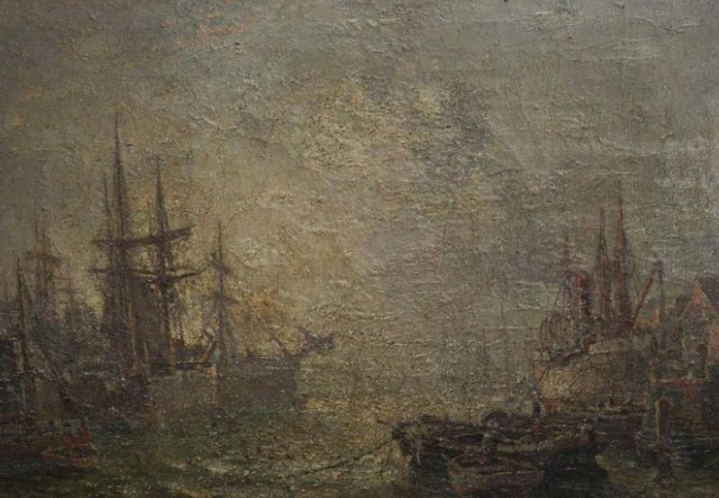 HARBOUR SCENE WITH SAILING AND ROWING BOATS