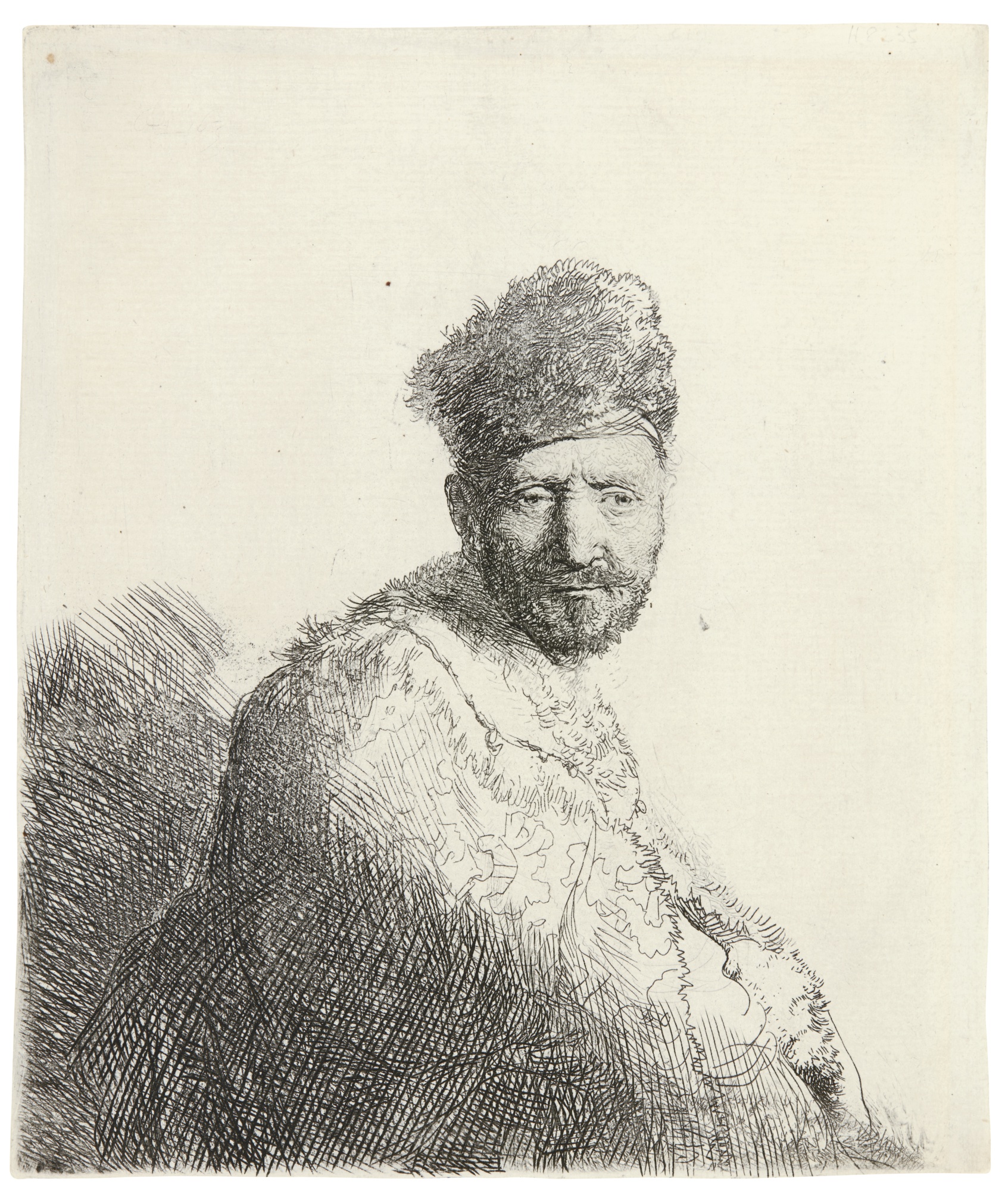 | BEARDED MAN, IN A FURRED ORIENTAL CAP AND ROBE (B., HOLL. 263; NEW HOLL. 85; H. 53) | |
